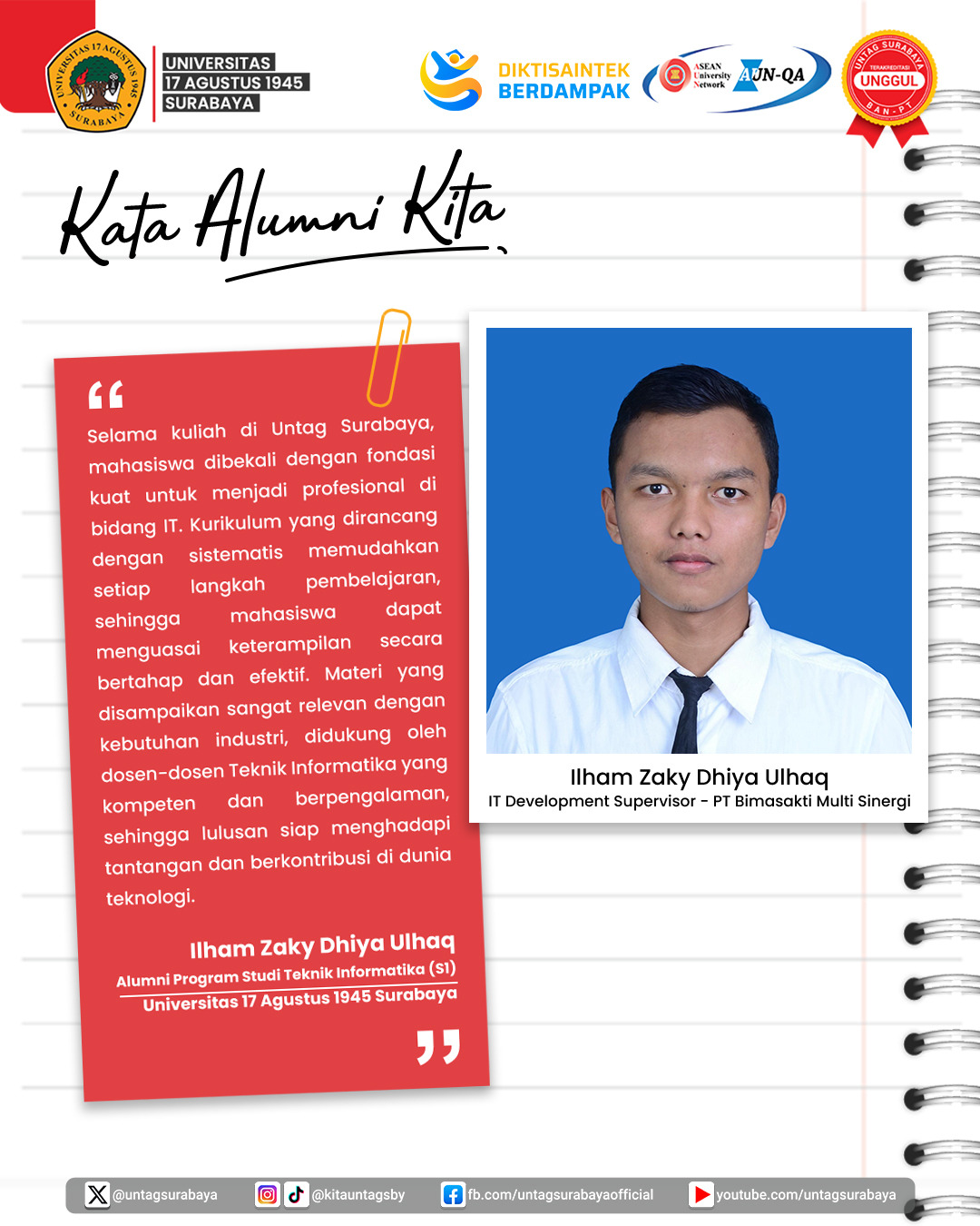 22 April 2026 - Happy Earth Day!Dalam rangka memperingati Hari Bumi, Universitas 17 Agustus 1945 (UNTAG) Surabaya memenunjukkan komitmennya terhadap pelestarian lingkungan melalui berbagai upaya...